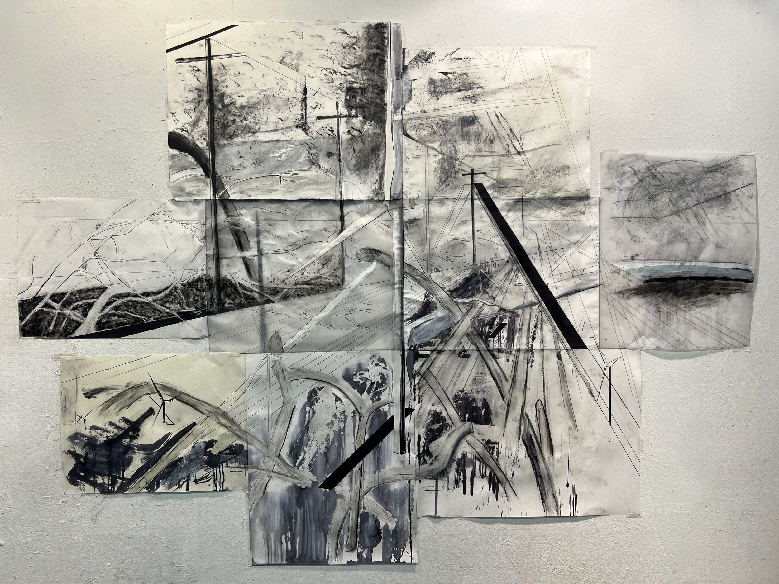 Medium: Graphite, ink, charcoal, petroleum jelly, alcohol,marker, acrylic on vellum and paper